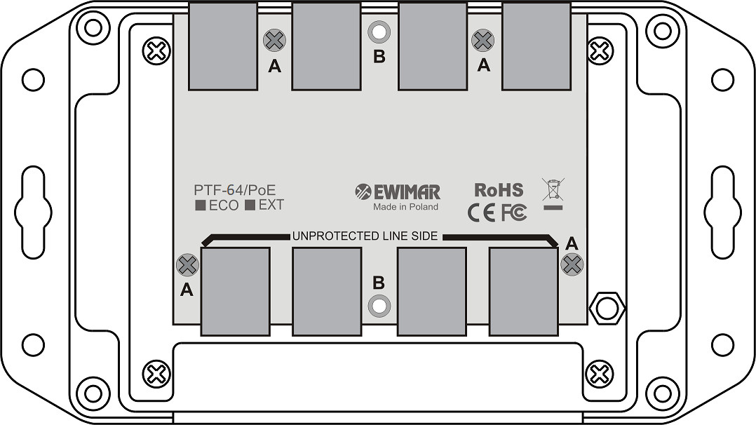 4-kanałowy moduł ogranicznika przepięć sieci LAN Gigabit Ethernet EWIMAR PTF-64-EXT/PoE
