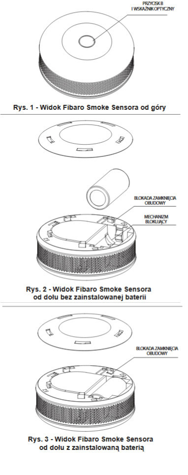 - Alarm sygnalizowany dźwiękiem, wskazaniem wizualnym wskaźnika optycznego oraz wysłaniem komend sterujących do kontrolera Z-Wave: