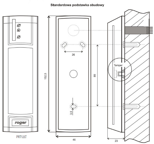 Czytnik zbliżeniowy Roger PRT12LT-BK-G – specyfikacja