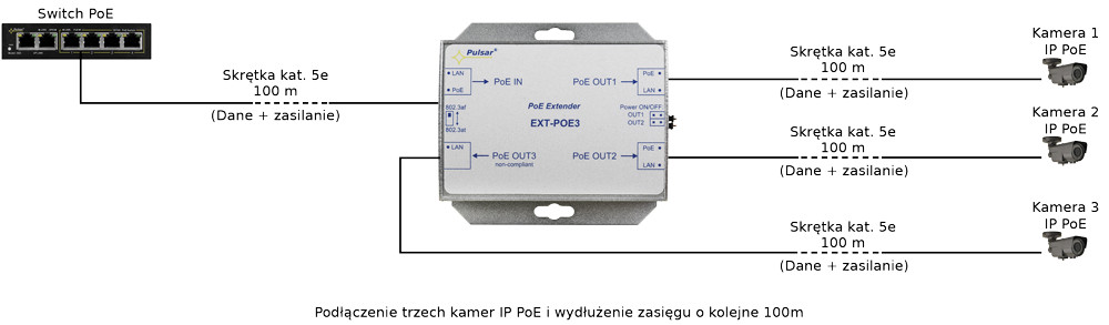 EXTENDER POE DO 3 KAMER IP Pulsar EXT-POE3
