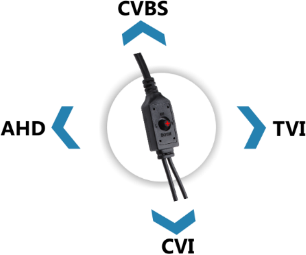 Kamerę można przełączyć w wybrany tryb pracy za pomocą joysticka umieszczonego na kablu. Przytrzymując przycisk w zadaną stronę przez 5s automatycznie następuje zmiana technologi na HD/CVI/TVI lub analog.