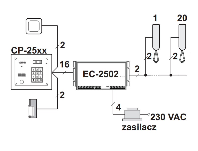 Laskomex system domofonu 10 lokatorów, 1 wejście, czytnik rfid.