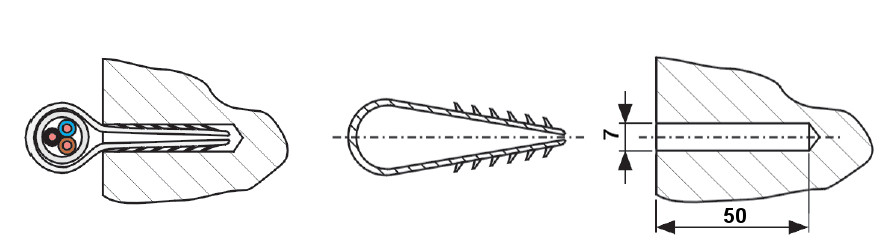 Trzymaki przeznaczone do szybkiego montażu przewodu okrągłego w otworach murowych.