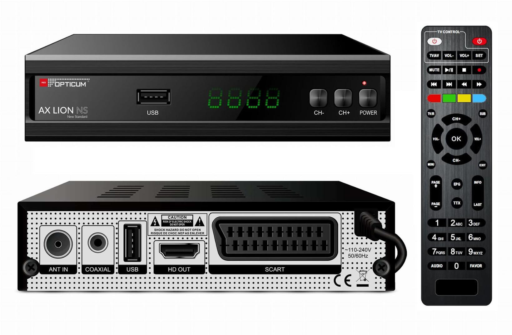 TUNER DVB-T2 OPTICUM AX LION NS H.265 10bit – specyfikacja techniczna: