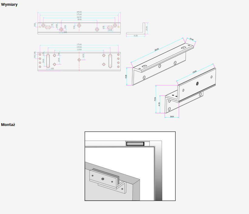 Uchwyt przeznaczony do montażu zwory na drzwiach otwierających się do wewnątrz.