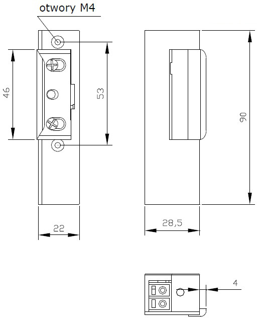 - Wymiary zewnętrzne obudowy: 22 x 28 x 90 mm